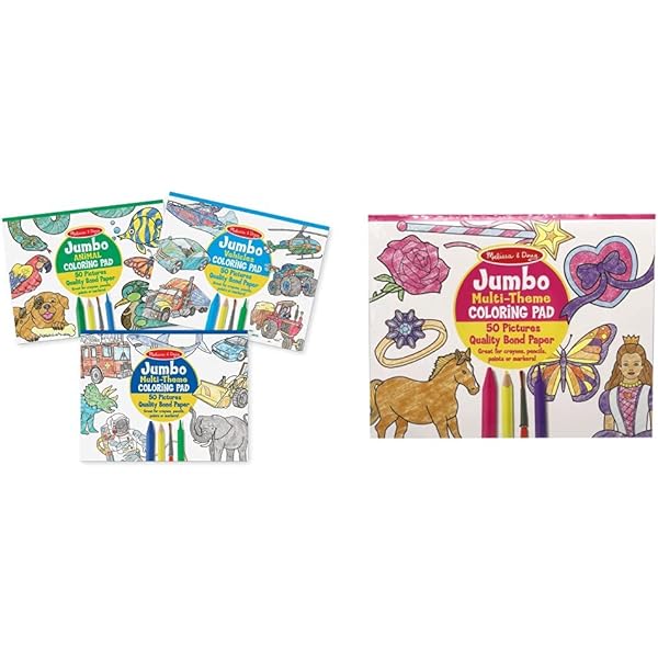 Amazon Com Melissa Doug Jumbo 50 Page Kids Coloring Pads Set Animals Vehicles And More Jumbo 50 Page Kids Coloring Pad Horses Hearts Flowers And More Toys Games